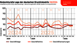 Im April 2026 bewerteten die vom ifo Institut befragten Entscheider der Druck- und Medienunternehmen ihre aktuelle Geschäftslage schlechter als im Vor­monat. Hingegen fallen die Einschätzungen im Hinblick auf die nächsten sechs Monate optimistischer aus. Die Ausprägungen der aktuellen und erwarteten Geschäftslage bestimmen die Entwicklung des Geschäftsklimas, das einen guten Vorlaufindikator für die Produktionsentwicklung der Druck- und Medienindustrie darstellt.
