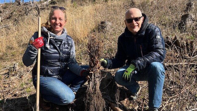 Am 23. März 2026 wurden die Bäume gepflanzt, die im vergangenen Jahr von den Teilnehmerunternehmen der Klimainitiative gespendet wurden. Stellvertretend für die Unternehmen haben Julia Rohmann, Projektmanagerin der Klimainitiative im BVDM, und Stefan Brunken, Berater der Klimainitiative der Druck- und Medienverbände über 3.500 Bäume gepflanzt.